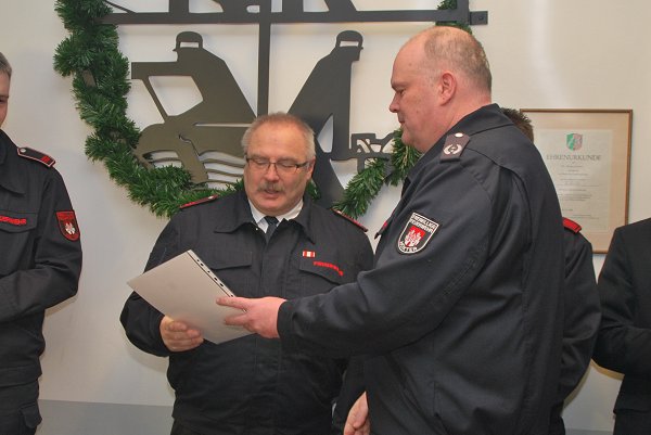 Anschließend nahm Schmits wichtige Personalangelegenheiten vor: Jugendfeuerwehrwart Christoph Tegethoff legte nach fast zehn Jahren sein Amt als Jugendfeuerwehrwart nieder. Sein Stellvertreter Peter Schnabel stellte altersbedingt ebenfalls sein Amt zur Verfügung. Als neuen Jugendwart ernannte Jürgen Schmits den Unterbrandmeister André Kasten. Zum neuen Stellvertreter wurde Unterbrandmeister Marcel Wagner ernannt. Stadtjugendwart Fritz Meyer dankte den alten und neuen Jugendwarten für ihren Einsatz.