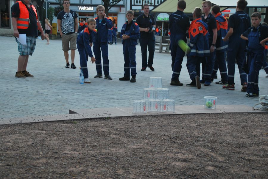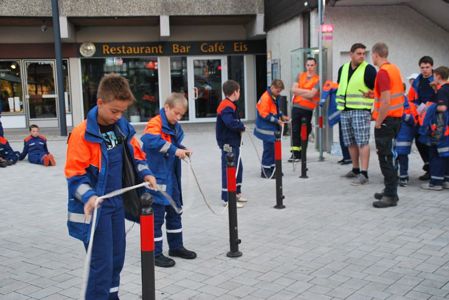 Bereits gestern waren die Organisatoren und einige Jugendwarte und Helfer angereist und haben die ersten Zelte aufgebaut, Waschgelegenheiten hergerichtet und sonstige Vorbereitungen getroffen. Ab Mittag trafen dann die ersten Jugendfeuerwehren auf dem Wasserplatz ein die ihre Zelte aufbauten und sich einrichteten. Schnell wurde der Zeltplatz größer. Nach dem Abendessen war noch eine Stadtrally geplant. In der Höxteraner Innenstadt mussten Fragen beantwortet und Aufgaben gelöst werden.